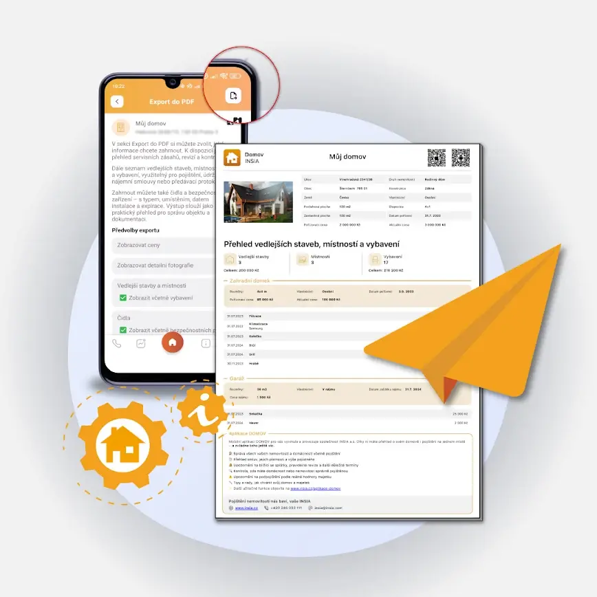 Pokud už máte v aplikaci uložené vaše nemovitosti či domácnosti, nabízí se nová praktická funkce Export do PDF. Výsledkem je profesionálně připravený PDF dokument, který můžete snadno uložit, vytisknout nebo poslat e-mailem. Hodí se při jednání s pojišťovnou, při prodeji nemovitosti i jako osobní archiv všech detailů na jednom místě.